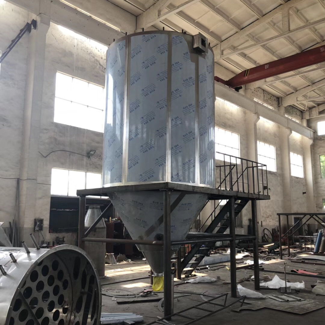 هوا فیلتر شده و به بالای توزیع کننده هوای خشک کن گرم می شود، هوای گرم به داخل مارپیچ به طور یکنواخت در محفظه خشک کن گرم می شود.مایع ماده از طریق نبولایزر گریز از مرکز با سرعت بالا در بالای بدنه برج به یک قطره مایع ریز اتمیزه اسپری می شود و می تواند در مدت زمان بسیار کوتاهی با هوای گرم تماس پیدا کند و می تواند به محصولات نهایی خشک شود.محصول نهایی به طور مداوم از پایین برج خشک کن و سیکلون تخلیه می شود و گاز خروجی توسط فن پیش نویس تخلیه می شود.