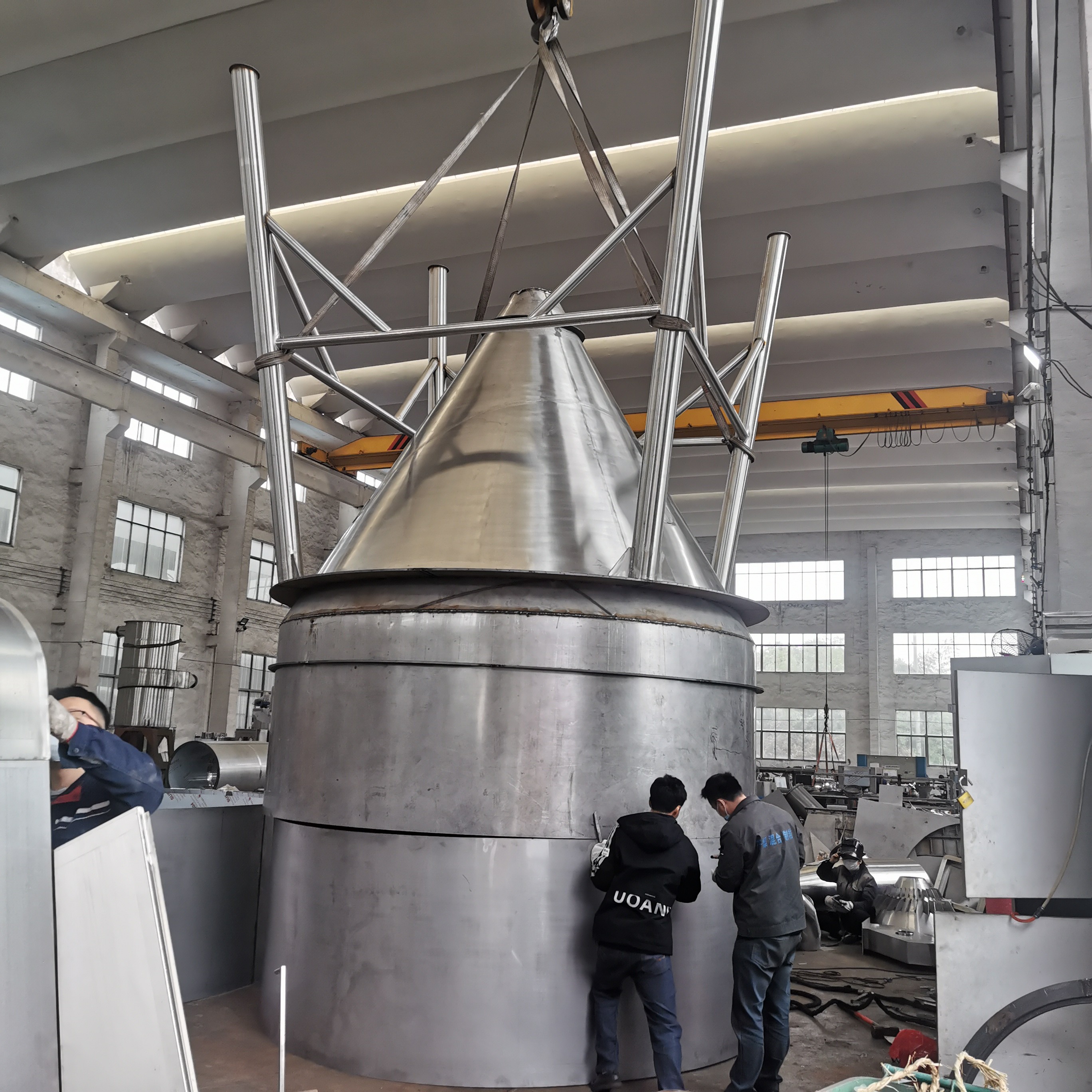 هوا فیلتر شده و به قسمت بالای توزیع کننده هوای خشک کن گرم می شود و هوای گرم به طور یکنواخت به صورت مارپیچ وارد محفظه خشک کن می شود.مایع ماده از طریق نبولایزر گریز از مرکز با سرعت بالا در بالای بدنه برج به یک قطره مایع ریز اتمیزه اسپری می شود و می تواند در مدت زمان بسیار کوتاهی با هوای گرم تماس پیدا کند و می تواند به محصولات نهایی خشک شود.محصول نهایی به طور مداوم از پایین برج خشک کن و سیکلون تخلیه می شود و گاز خروجی توسط فن پیش نویس تخلیه می شود.
