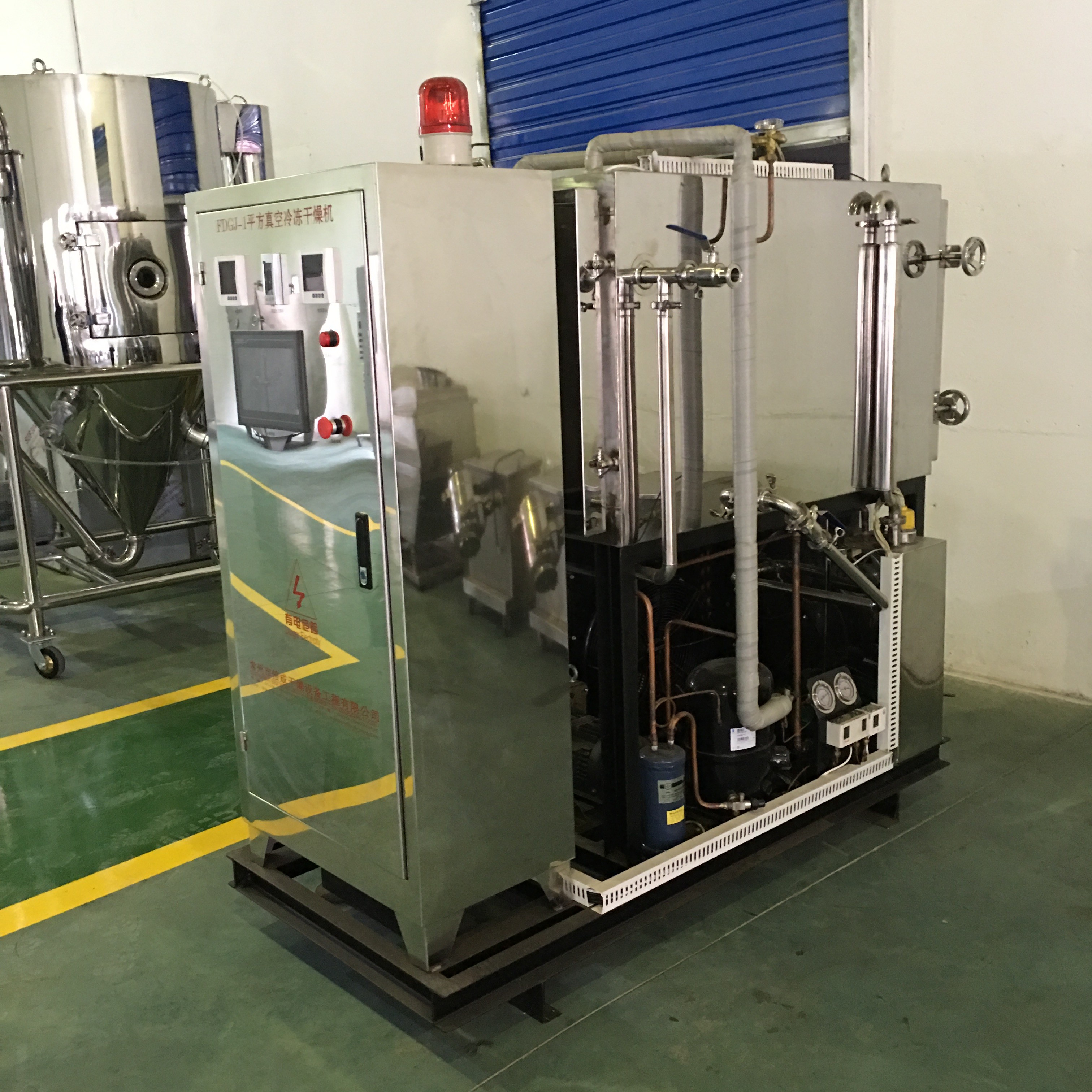 یخ خشک کن از یک سیستم تبرید، یک سیستم خلاء، یک سیستم گرمایش و یک سیستم کنترل ابزار دقیق الکتریکی تشکیل شده است.اجزای اصلی فر، کندانسور، واحدهای تبرید، پمپ های خلاء، دستگاه های گرمایش / سرمایش است.اصل کار آن این است که مواد را زیر یک دمای معین منجمد می کنند و سپس در شرایط خلاء حالت جامد آب (یخ) مستقیماً به بخار آب تصعید می شود و برای بدست آوردن اقلام خشک خارج می شود.