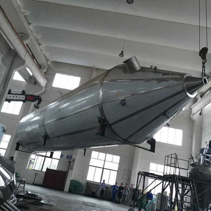 مواد خام مایع یا خمیر به قطره کوچک مایع توسط سمپاش فشار داده شده به کمک فشار پمپ دیافرام پاشیده می شود و به سرعت از طریق تبادل حرارتی فراوان (10-90 ثانیه) خشک می شود. بیشتر گرانول های پودر از خروجی تخلیه جمع آوری می شوند. پایین خشک کنهوای تلف شده و پودر ریز توسط سیکلون از هم جدا می شوند، هوای تلف شده از خروجی فن تخلیه می شود و پودر ریز در پایین سیکلون جمع آوری می شود.یک گردگیر درجه دو مجهز در خروجی وجود دارد.بنابراین، نرخ بازیابی گرانول پودر نهایی می تواند 96٪ تا 98٪ باشد.